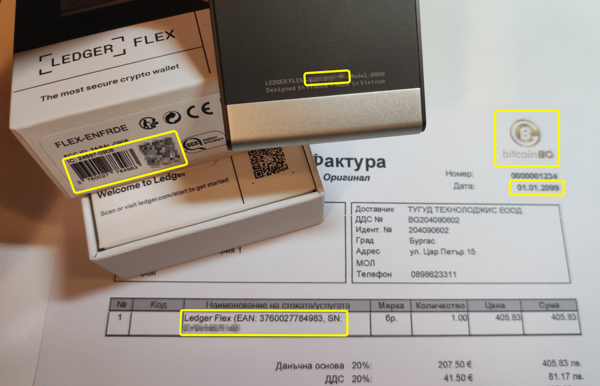 - серийния номер от гърба на самото устройство, QR-а на кутията и документа за покупка.